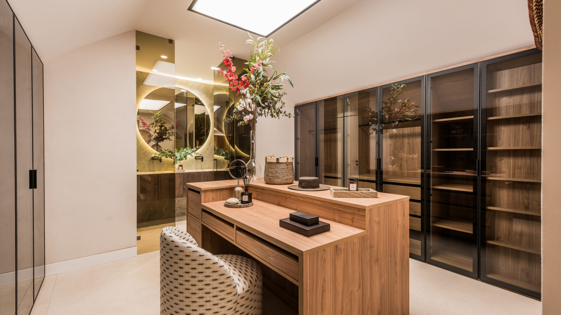 With a total built area of 206 m² and 56 m² of terraces, this elegant four-bedroom, five-bathroom home seamlessly blends luxury, comfort, and contemporary open-plan living. The main floor features a spacious living and dining area with an electric fireplace, complemented by a bright, fully equipped open-plan kitchen fitted with high-end appliances and a dedicated dining space.