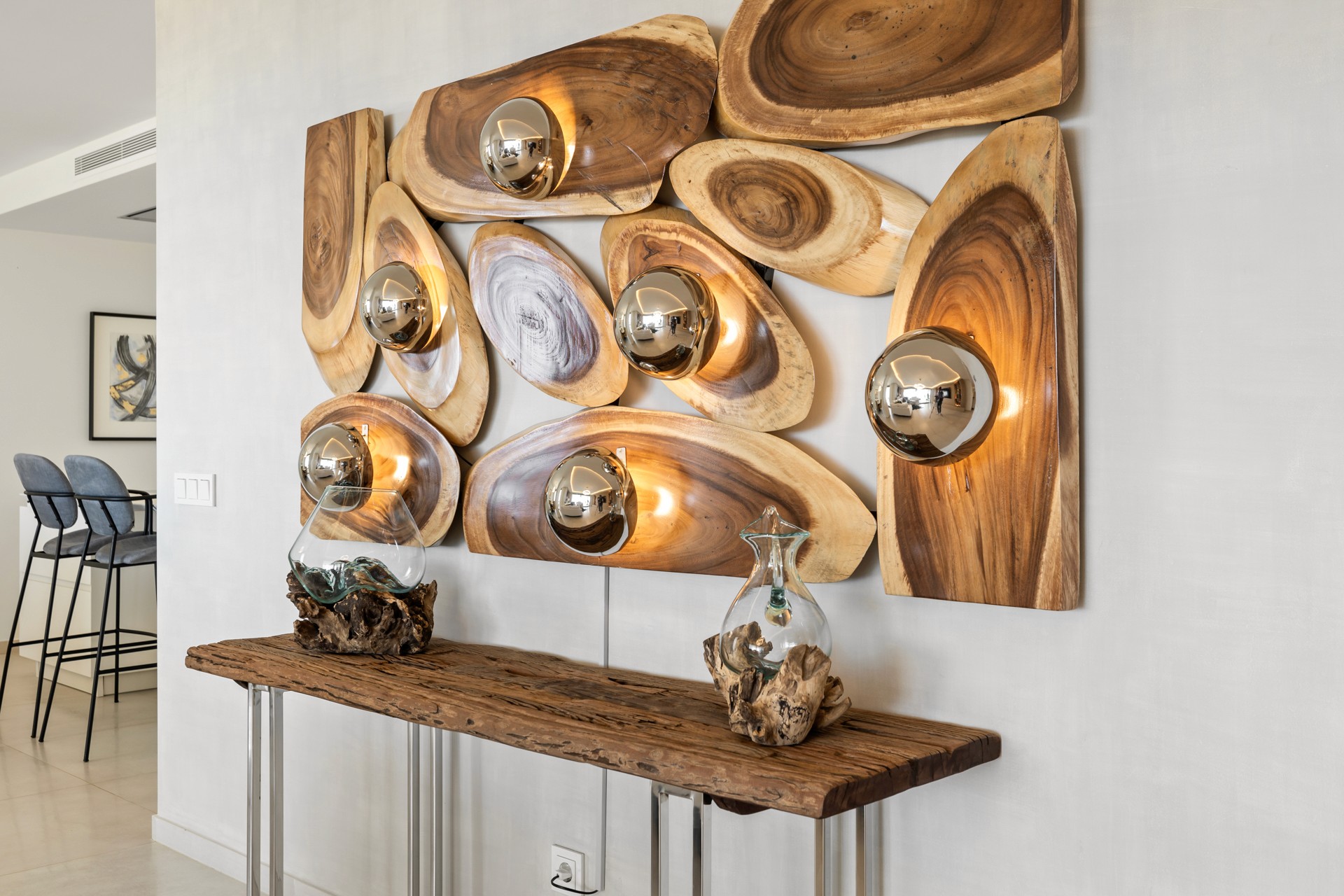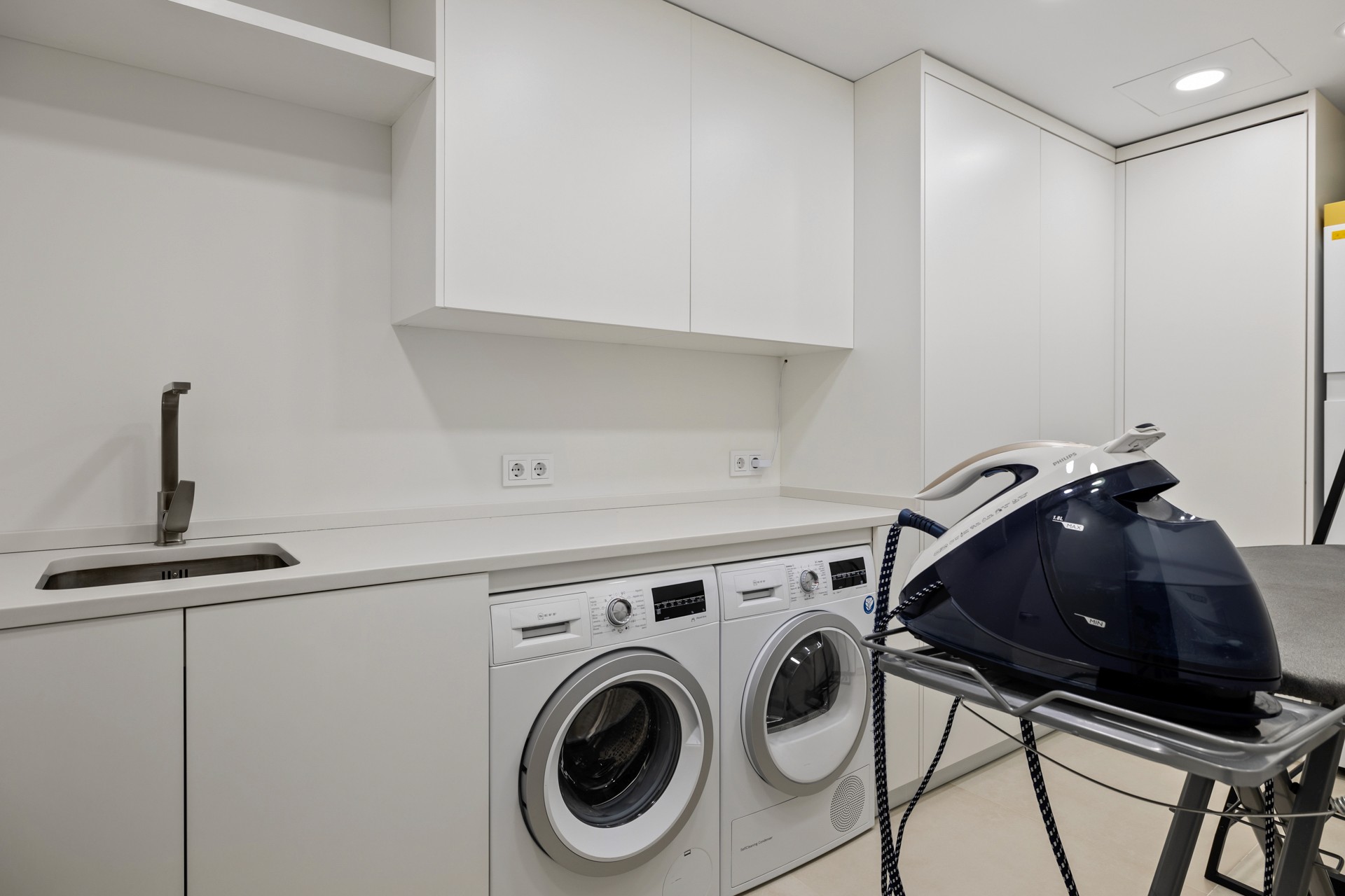 The apartment features a spacious open-plan living and dining area with a fireplace, seamlessly connected to a fully fitted Gaggenau kitchen. High-end finishes run throughout, including elegant Villeroy & Boch bathrooms. The master suite includes a private dressing area and en-suite bathroom, while six additional guest bedrooms provide generous accommodation for family and visitors.