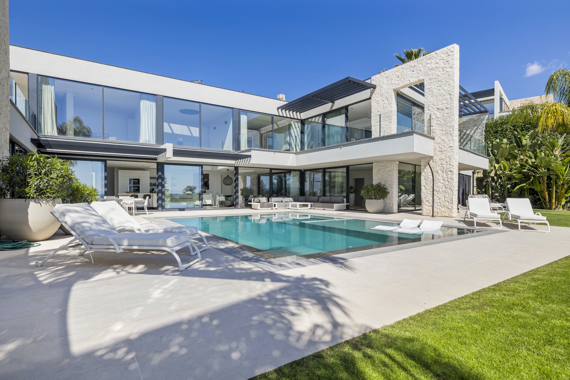 Villa Aqua is a stunning newly built contemporary villa located in the prestigious community of La Alquería, Benahavís. Positioned frontline to the golf course with an east-to-south orientation, the property enjoys breathtaking panoramic views of the Mediterranean Sea, the coastline, and La Concha mountain.