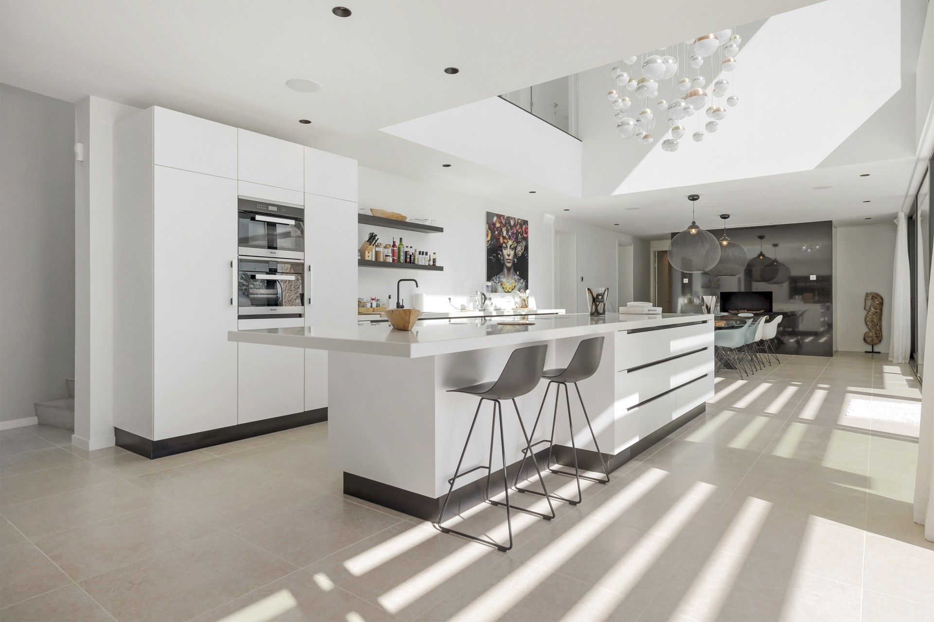 Set on a generous 1,195 m² plot, the villa offers 407 m² of refined living space complemented by 86 m² of terraces. Designed with clean architectural lines and sophisticated finishes, the home features five en-suite bedrooms, a spacious open-plan living area with high ceilings and a fireplace, and a fully equipped designer kitchen fitted with Miele and Bora appliances.