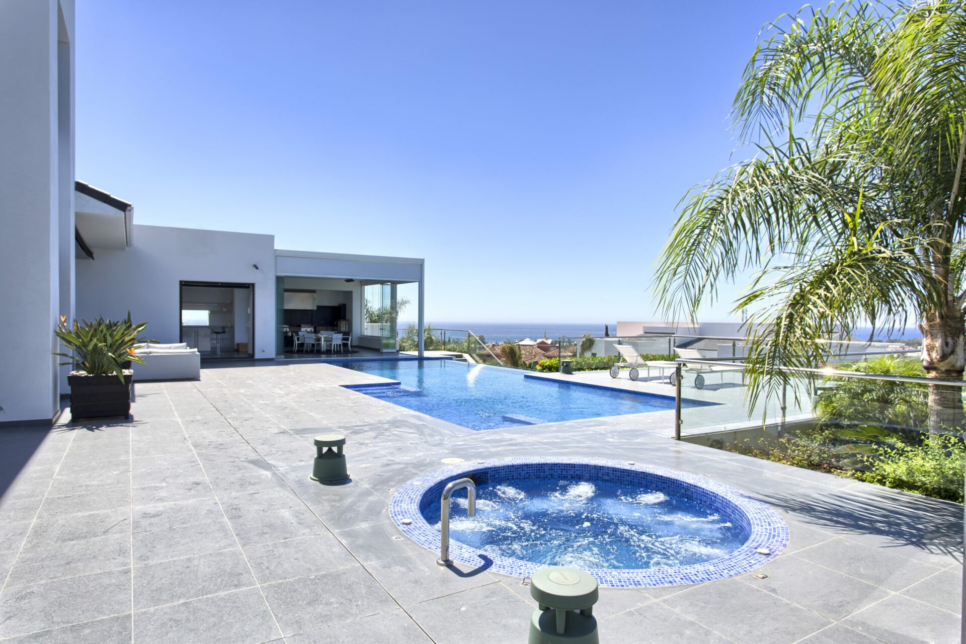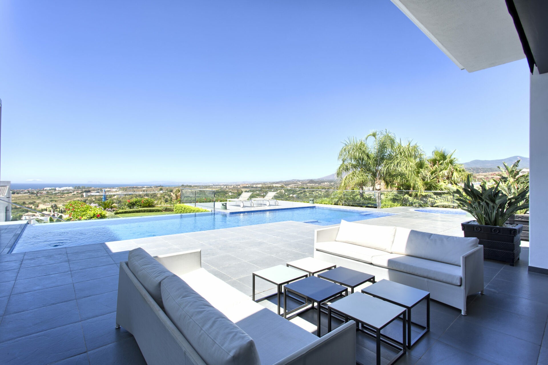 Perched in the prestigious gated community of Los Flamingos, this south-to-southwest-facing contemporary villa enjoys panoramic views over the Mediterranean Sea, golf course, and surrounding hills. Located within one of the Costa del Sol’s most exclusive residential enclaves, the property offers refined modern living in close proximity to Marbella, Puerto Banús, and the coast.