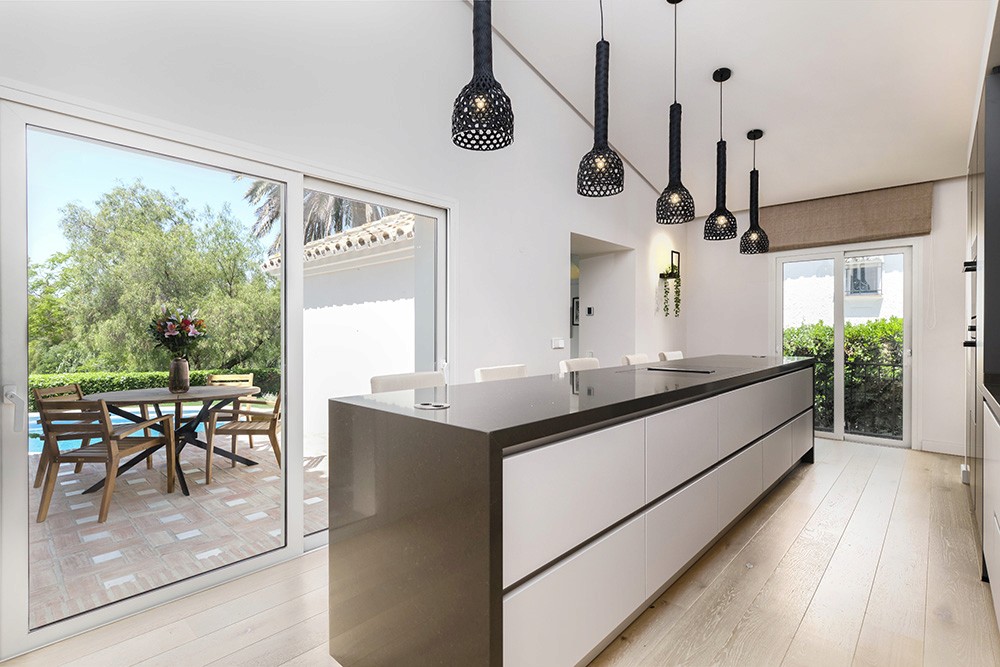 Beautifully positioned frontline golf villa in Guadalmina Alta, set in a quiet cul-de-sac with west-facing orientation and direct golf access. The property offers complete privacy and is within walking distance to Centro Comercial Guadalmina and the golf club.