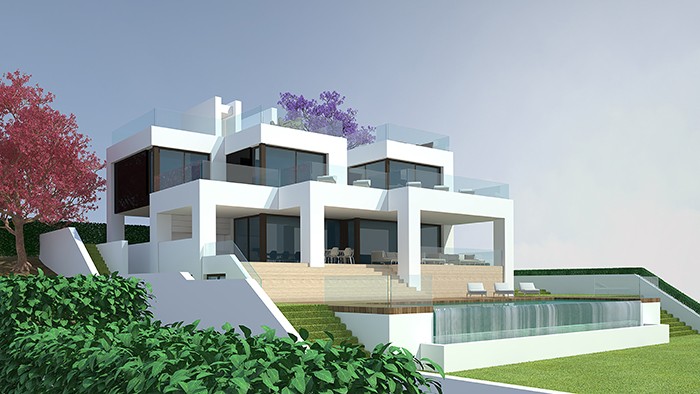 Striking contemporary villa located in the heart of Nueva Andalucía, offering modern architecture, generous interior volumes, and seamless indoor-outdoor living.