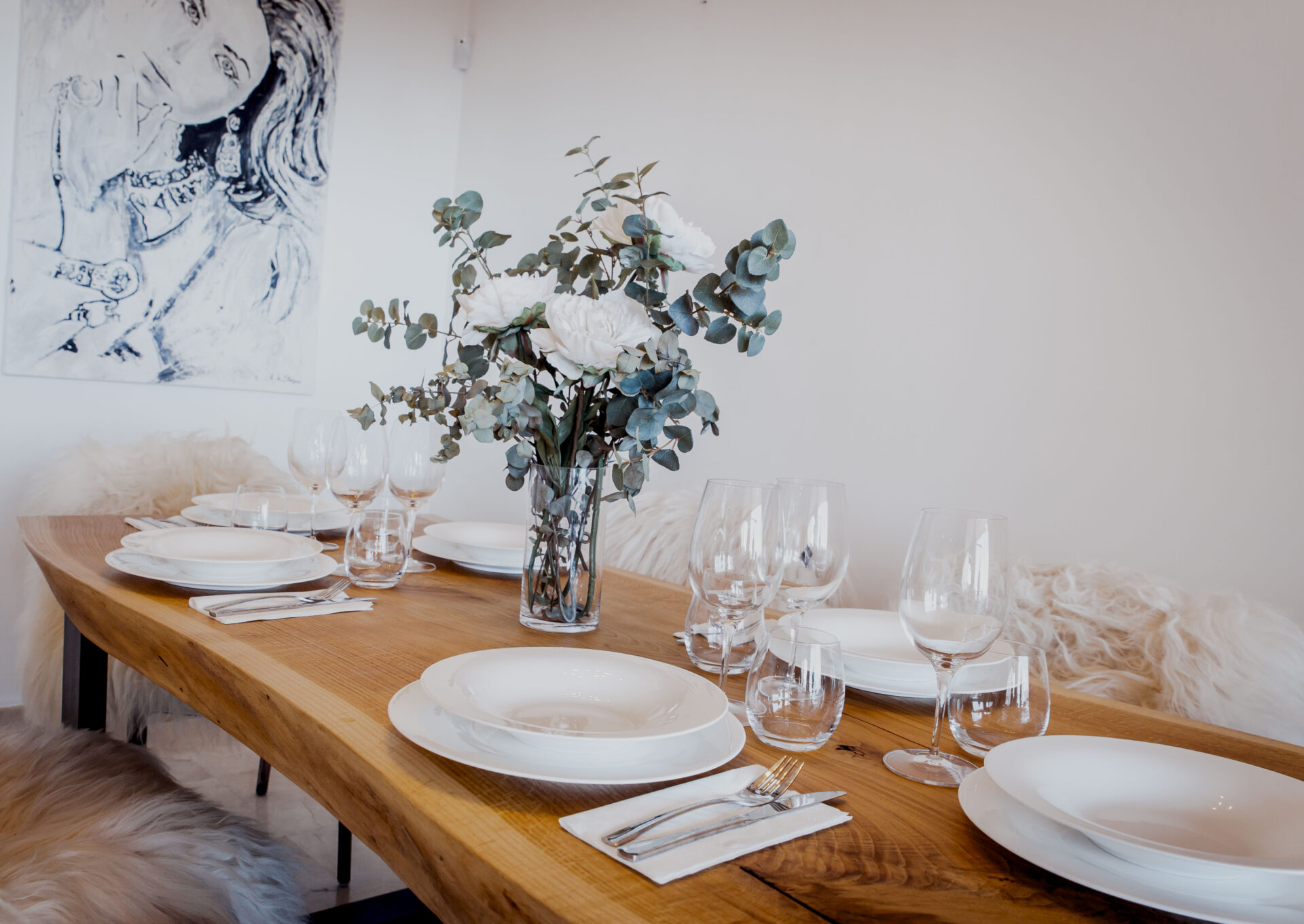 The interior features elegant Granada cream marble flooring, integrated spot lighting, and raised ceilings that enhance the sense of space and natural light. A state-of-the-art kitchen fitted with integrated Neff appliances opens into a spacious living and dining area, framed by large windows and doors leading to a covered terrace ideal for outdoor dining and relaxation, complete with an outdoor television.