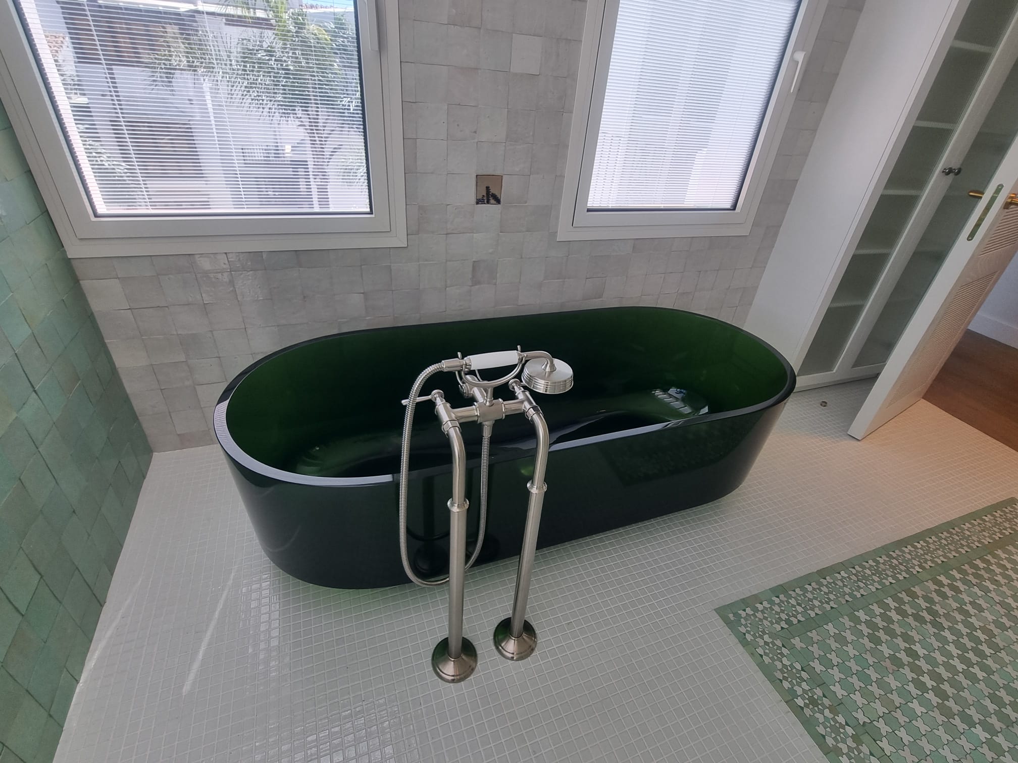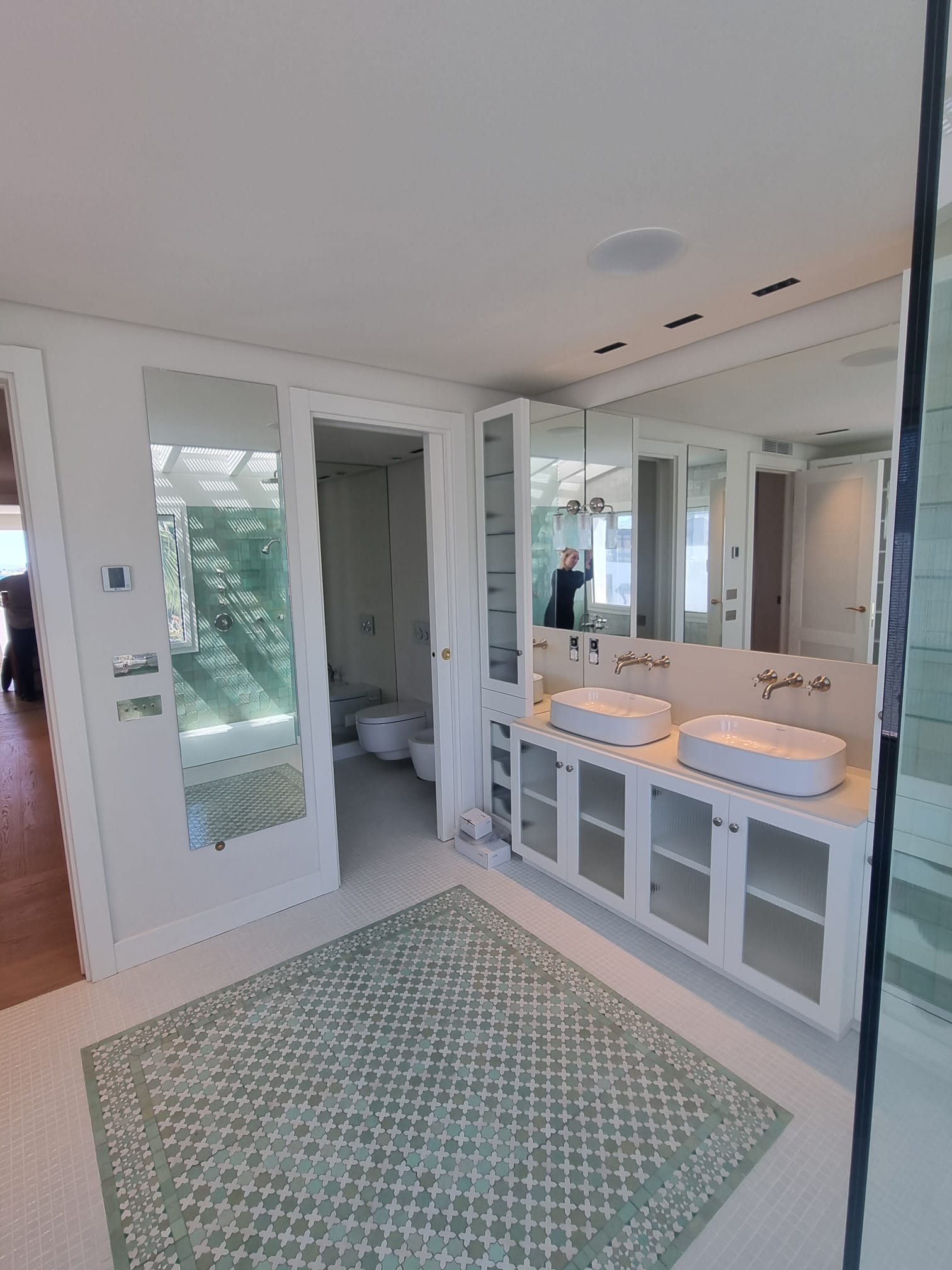 Features include elegant oak interior doors, bespoke luxury carpentry throughout, and sophisticated mosaic-finished bathrooms. Underfloor heating runs seamlessly across the entire apartment, ensuring year-round comfort.
