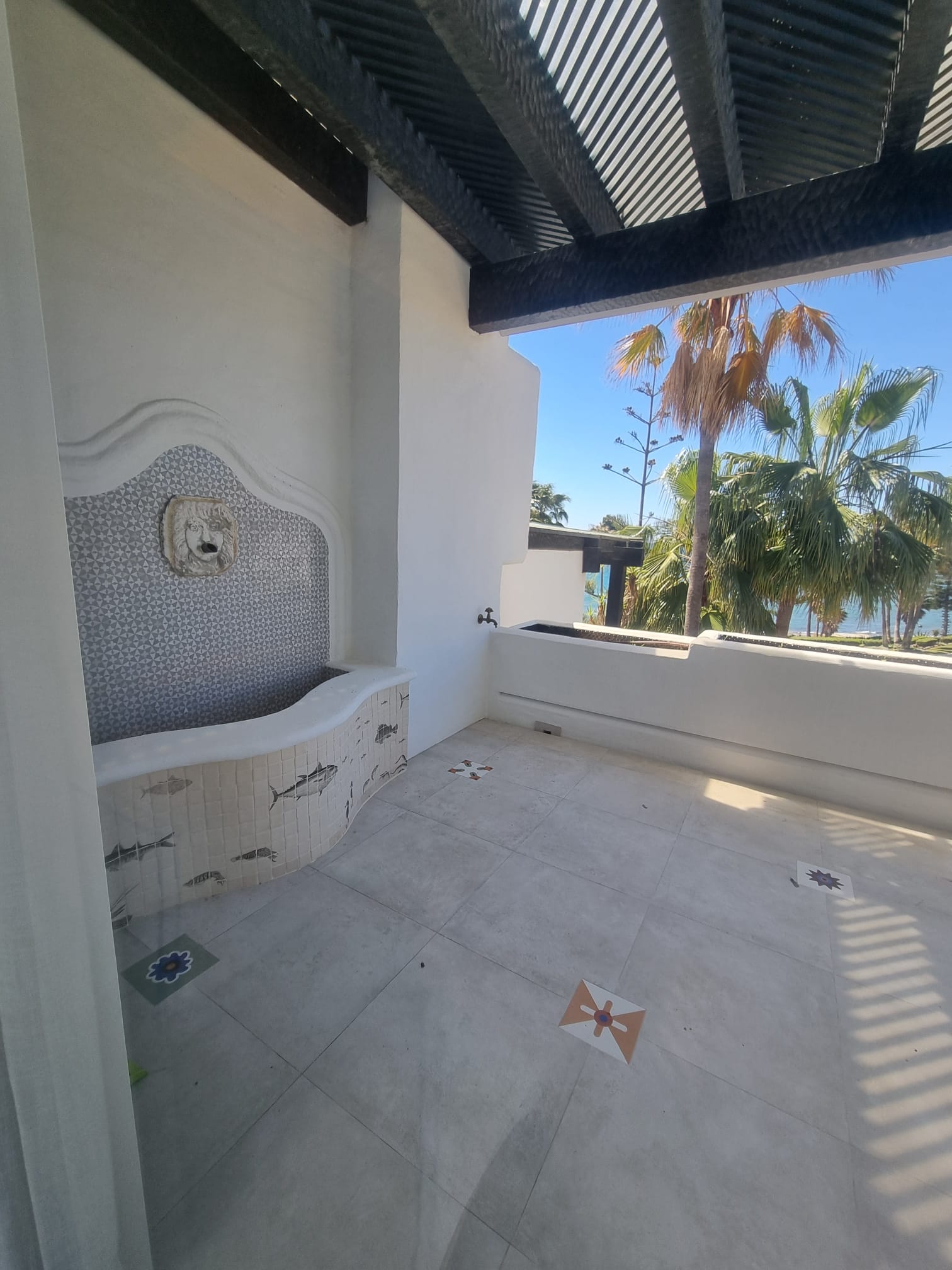 A standout feature is the expansive private roof terrace, complete with a jacuzzi and electric canopy, offering the perfect setting for relaxing or entertaining against the backdrop of uninterrupted sea views.